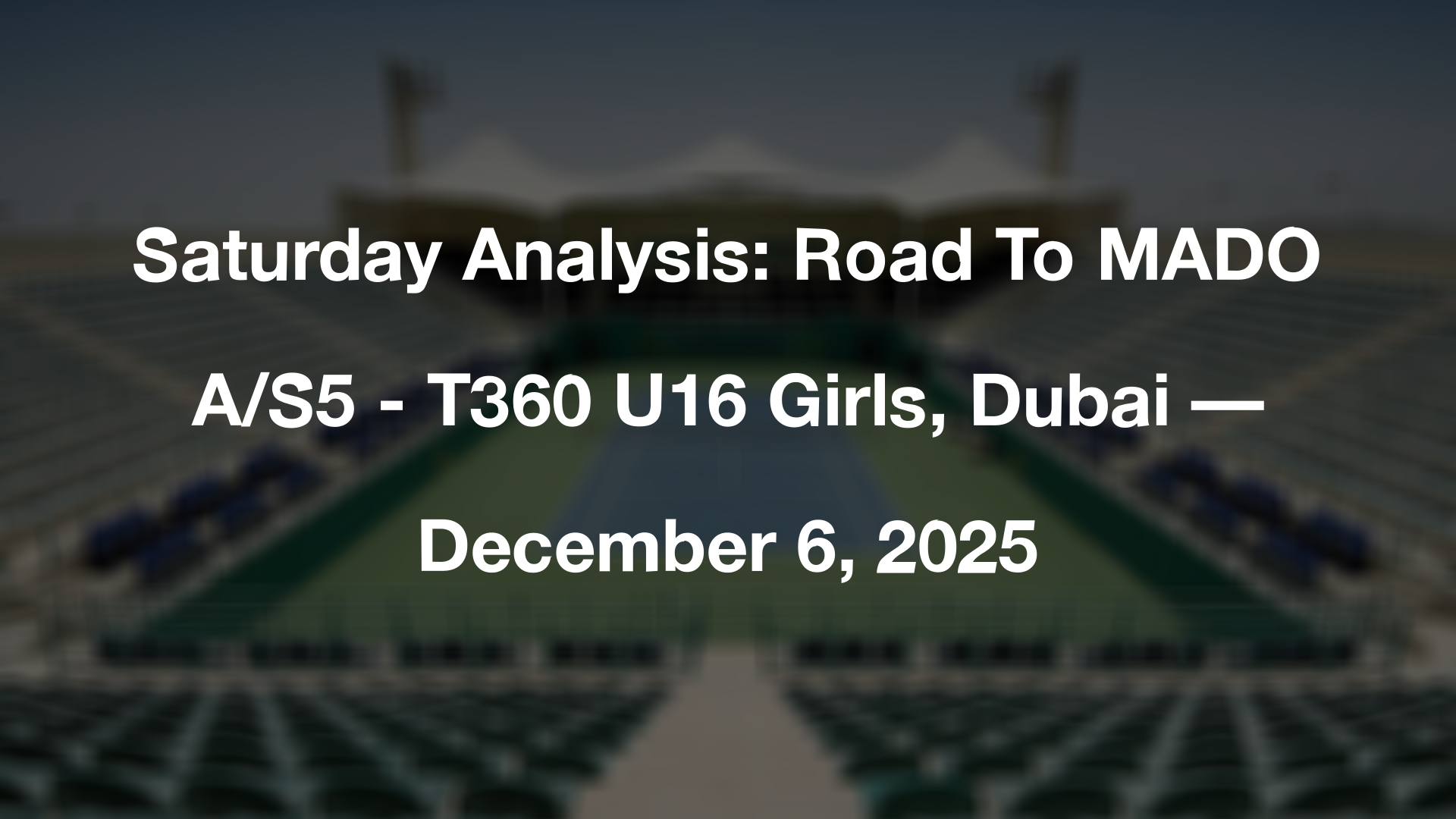 Day 2 in Dubai features the completion of the Round of 16 and the first wave of quarterfinal action at the Road To MADO A/S5 - T360 U16 Girls. Top-ranked players Isabelle James and Mayar Rahal headline the draw as the pathway to the Mubadala Abu Dhabi Open continues on hard courts.
