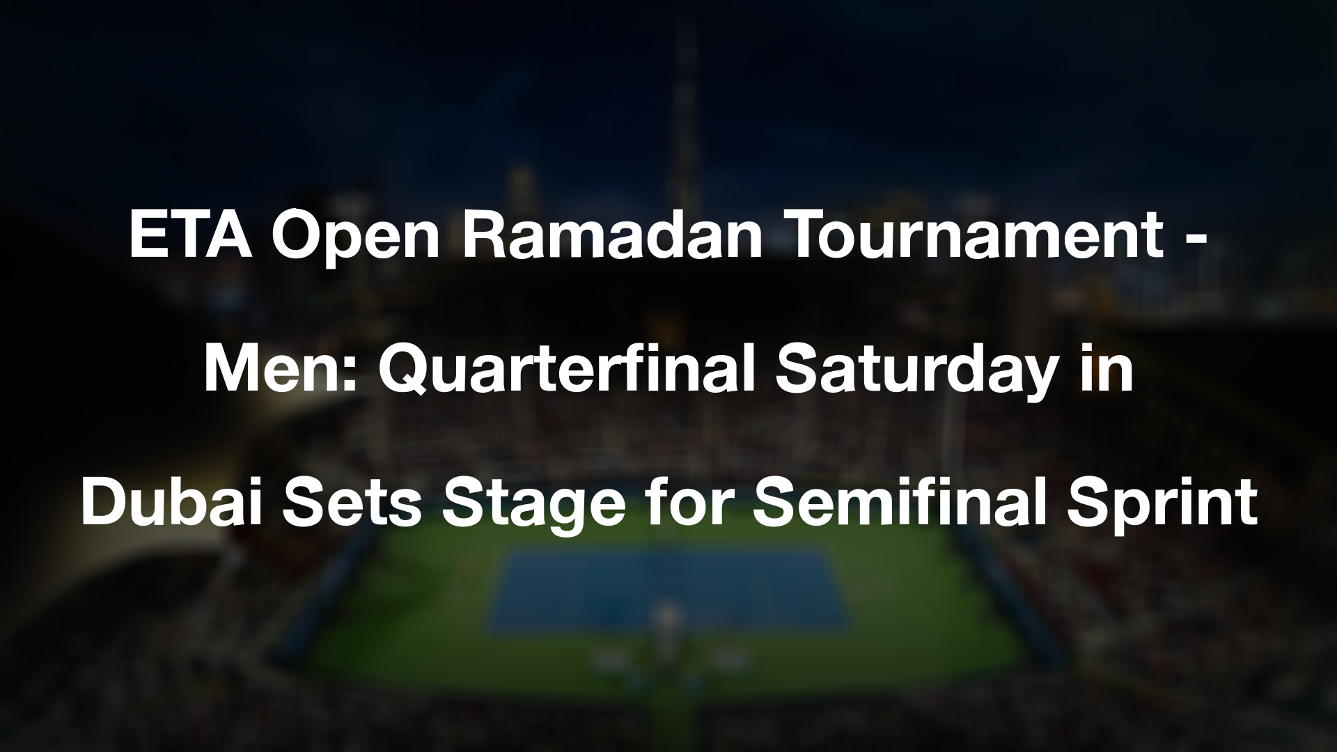 With the Dubai hard courts under Ramadan lights, the ETA Open Ramadan Tournament - Men reaches quarterfinal Saturday on March 14, 2026. Four compelling matchups lead into same-night semifinals, before Sunday’s 21:00 final.